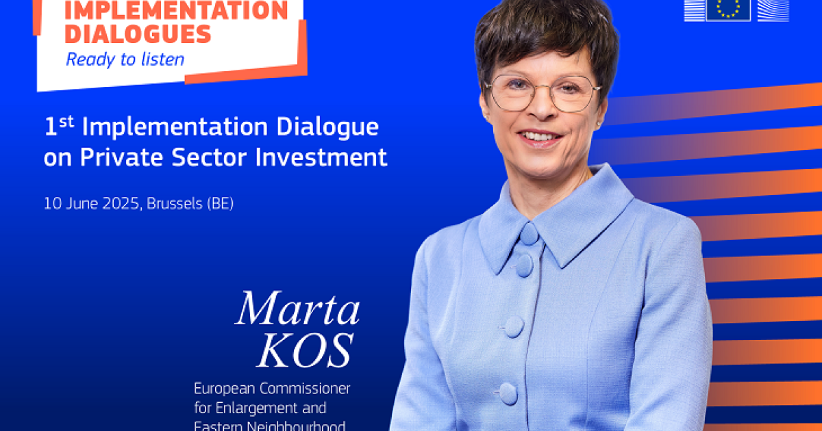 The guiding principle of the Implementation Dialogue is to offer an opportunity for business support organisations and private sector representatives to meet with Commissioner Marta Kos for an open exchange on improved support for strategic investments in the Enlargement and Eastern neighbourhood countries.
